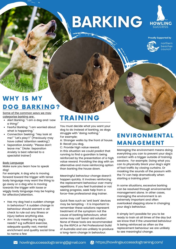 At Howling Success Dog Training, we believe that knowledge is key to building a stronger bond with your dog and creating a happy, well-behaved companion. To help you on your journey, we’ve put together a collection of free educational handouts designed to support you with essential training and behaviour tips.